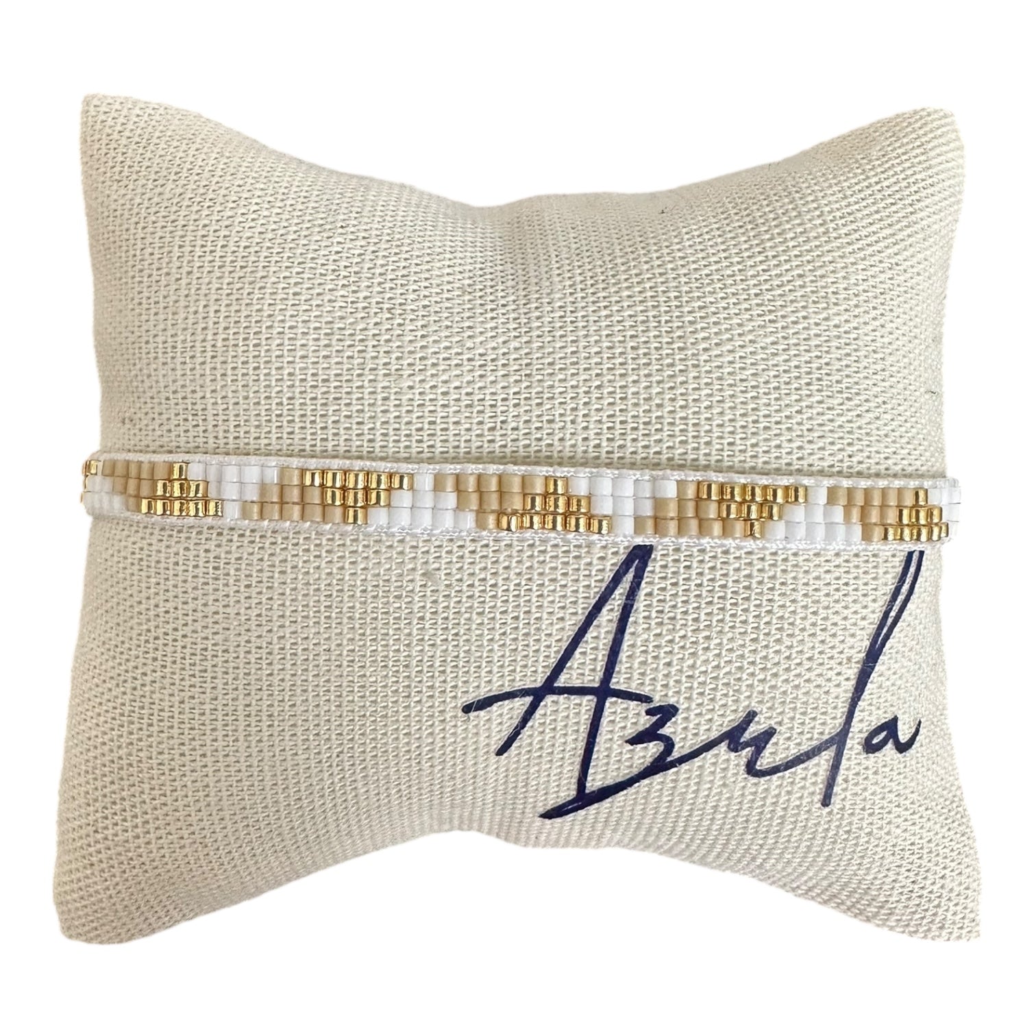 Brazalete tejido con cuentas de cristal calibrado miyuki y aplicaciones en baño de oro 22k.