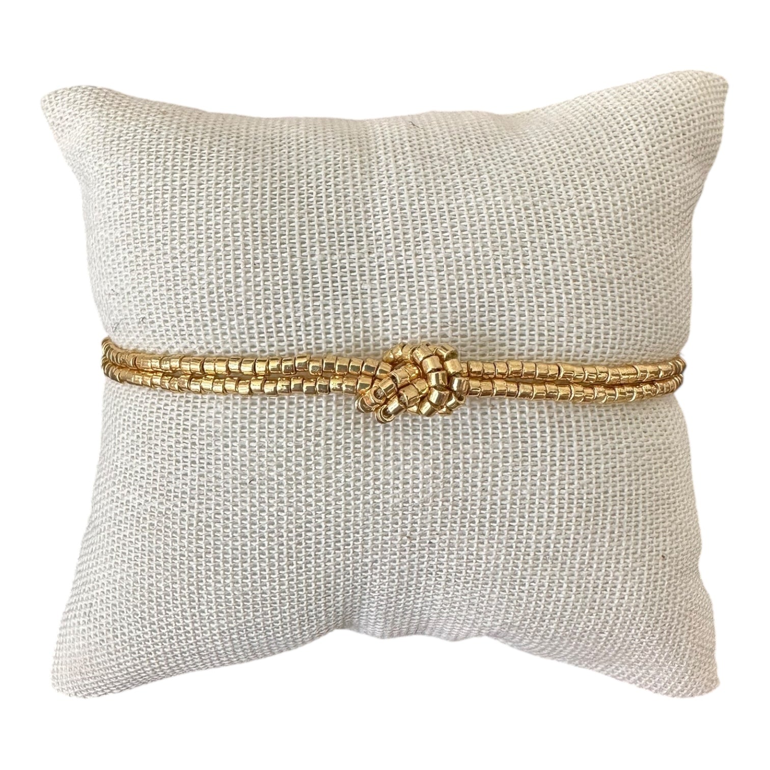 Juego de brazaletes tejido con cuentas de cristal calibrado miyuki y aplicaciones en baño de oro 22k